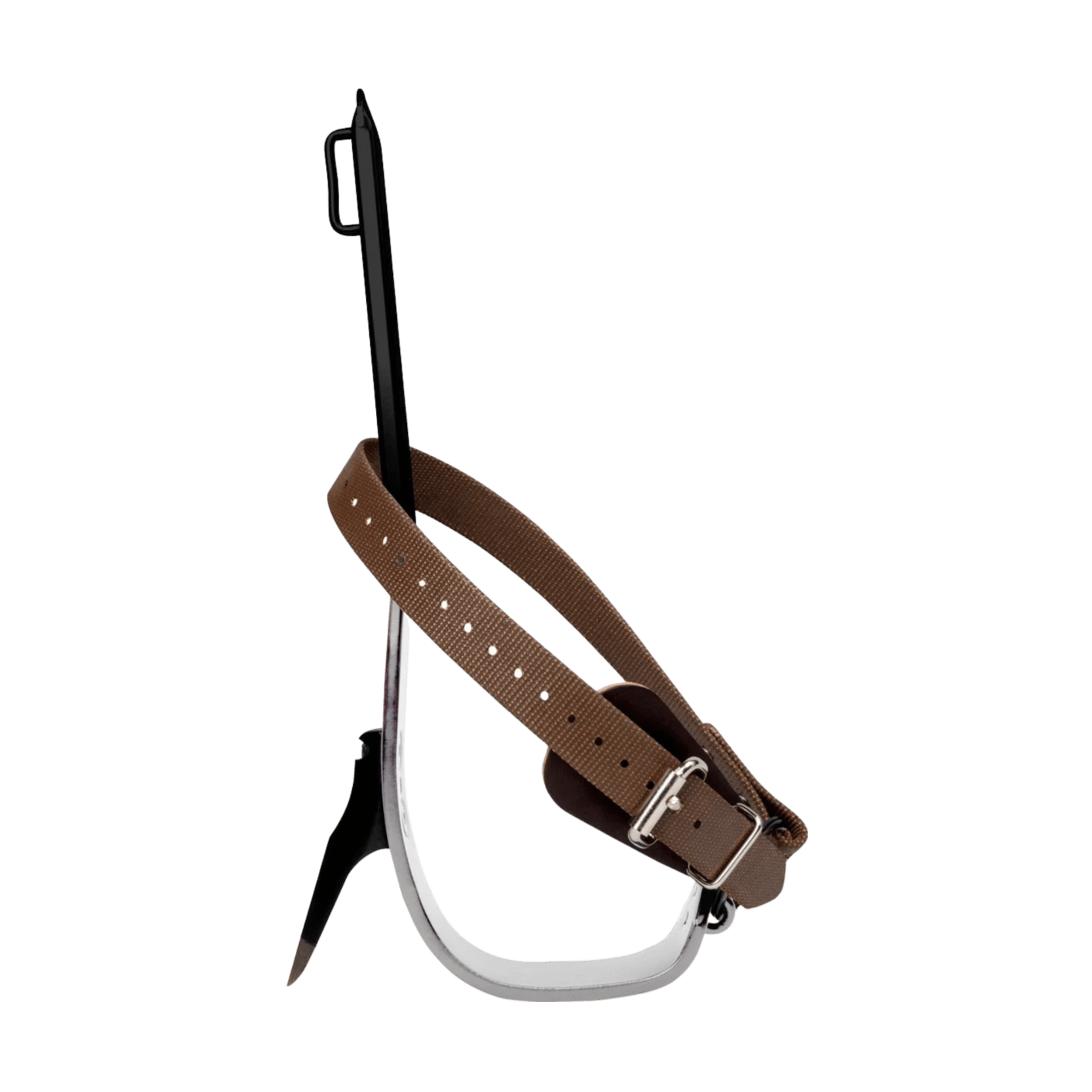 • Une construction de sangle de pied en deux parties avec un anneau fendu qui est fixé en permanence à l’anneau de l’étrier de votre grimpeur.
