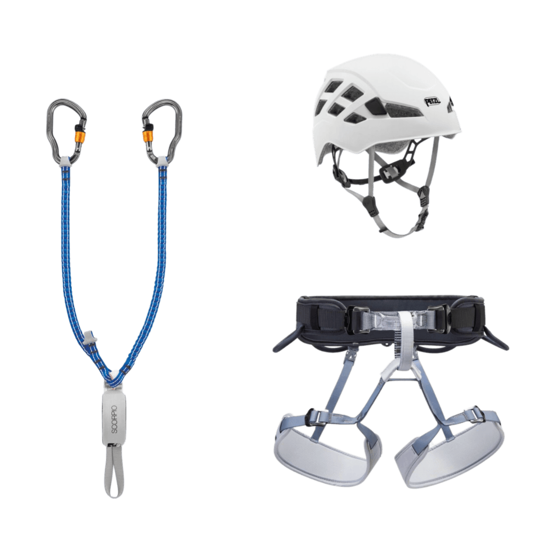 Le kit classique pour s’aventurer en via ferrata ! Léger, le KIT VIA FERRATA VERTIGO comprend une longe SCORPIO VERTIGO, un harnais entièrement réglable CORAX et un casque BOREO.